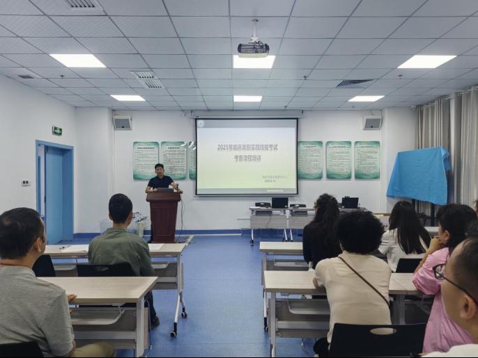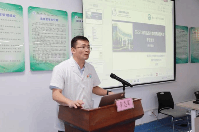 医院党政领导对此次考试工作给予高度重视。副院长傅小云教授牵头召开考前协调会,对执考规范、考务组织等环节提出“高标准、严要求”的工作准则。国考基地办公室精心筹备,统筹抽调省内69名考官及40余名考务、保障人员,围绕公平公正执考、纪律要求、保密规范及实施方案等内容,对全体工作人员开展系统性培训与考核,确保各环节衔接有序。