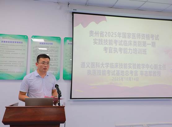2025年10月14日-10月17日,由贵州省卫健委贵州省卫生健康人才中心主办,遵义医科大学附属医院承办的贵州省2025年国家医师资格考试实践技能考试(临床类别)第一期考官执考能力培训班在遵义医科大学临床技能实验教学中心成功举行。本次培训班为期4天,共有来自遵义市、黔南州、铜仁市、安顺市4个地、市、州的71名考官参加培训。